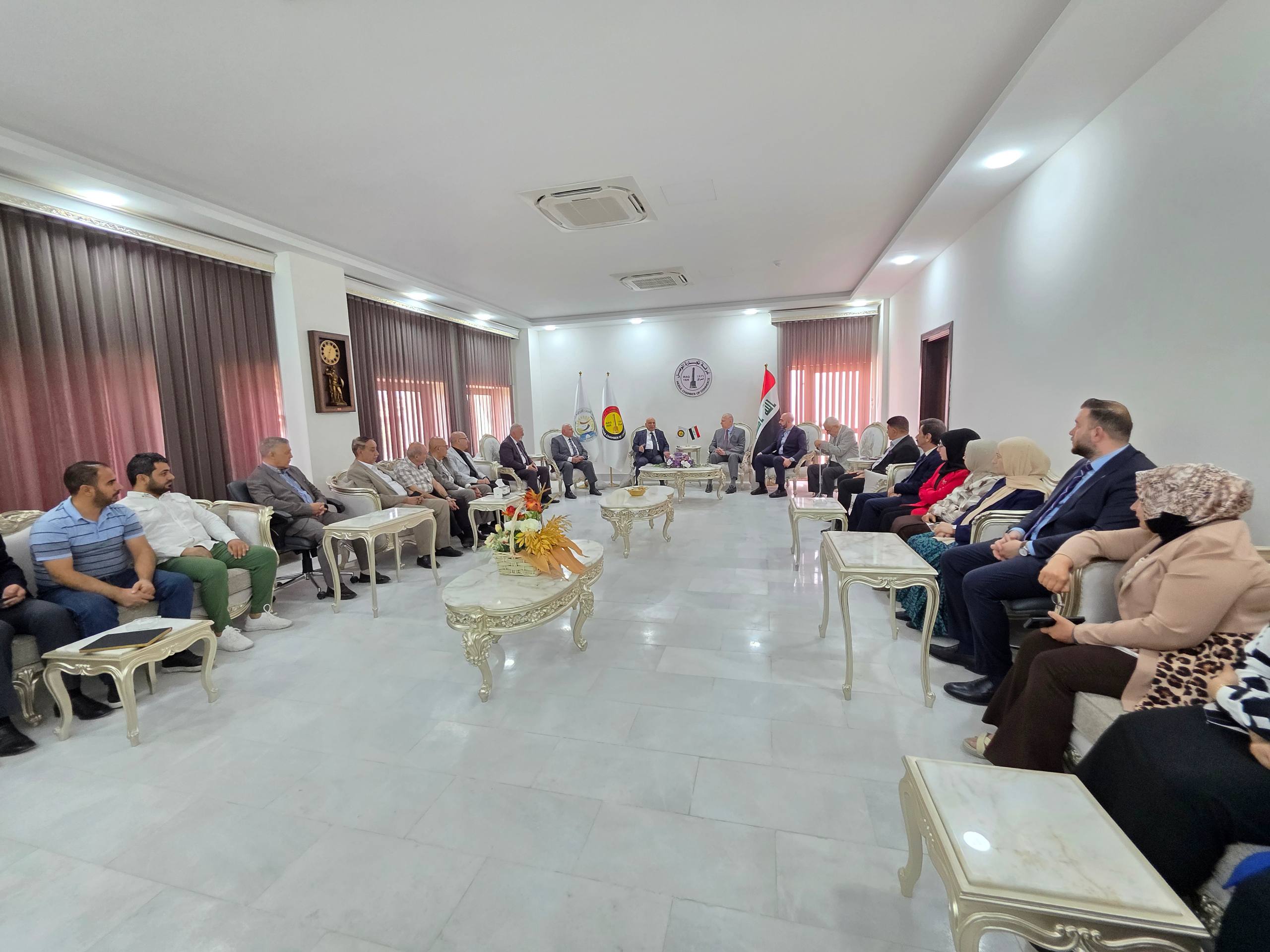 وخلال الزيارة التقى الوفد برئيس الغرفة السيد مقبل صديق الدباغ وأعضاء مجلس الإدارة وعدد من مسؤولي القطاعات، حيث جرى بحث واقع العمل التجاري والتحديات التي تواجه الغرفة وسبل النهوض بالقطاع الاقتصادي في الموصل.