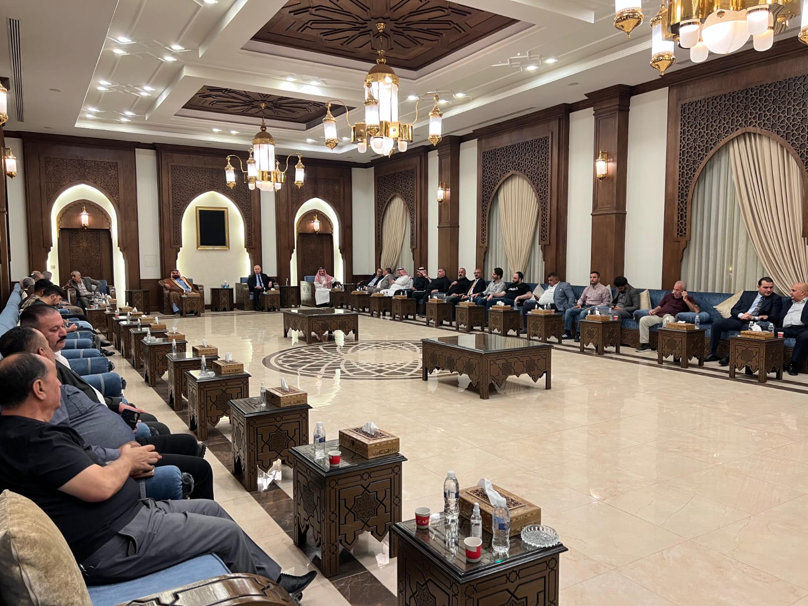 السيد أسامة عبد العزيز النجيفي ، والمرشح المهندس سنان اسامة النجيفي يستقبلان جمعاً من شيوخ ووجهاء العشائر والمواطنين في مجلس آل النجيفي بأيمن الموصل