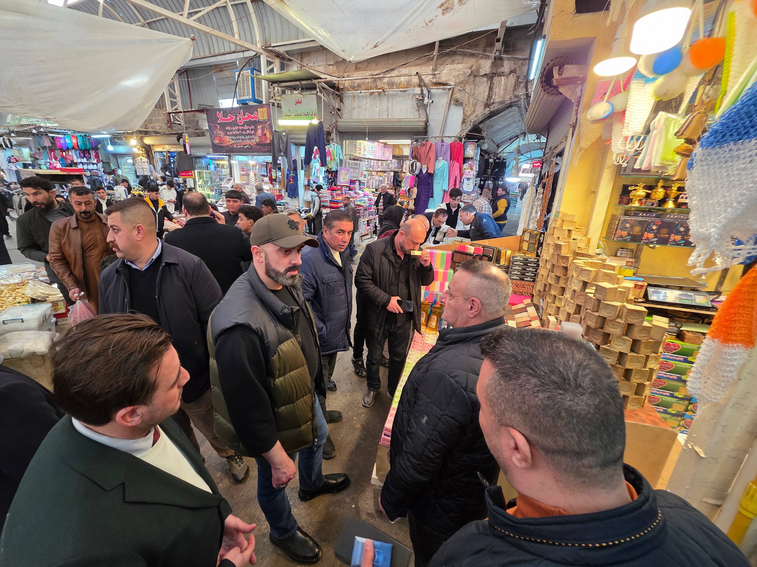 أجرى المهندس سنان أسامة النجيفي جولة ميدانية في سوق باب السراي وسوق الحدادين وسوق السمك بالموصل والتقى خلالها بعدد من أصحاب المحال والمواطنين كما اطلع على واقع السوق والمعوقات التي تواجه العاملين مؤكداً أهمية دعم الأسواق الشعبية وضرورة التعاون مع الجهات المعنية لتحسين الخدمات وتنشيط الحركة التجارية.